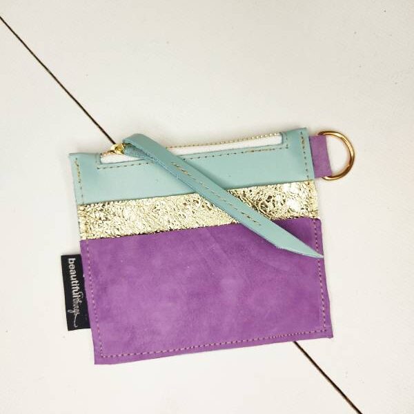 Po pierwsze portfelik zaprojektowałam i wykonałam ręcznie, ze skóry naturalnej, w myśl zasady zero waste. Co to oznacza? Najzwyczajniej w świecie, kupując ten produkt pomagasz mi w zagospodarowaniu skóry pozostałej po szyciu torebek. Dzięki temu razem ograniczmy odpady.