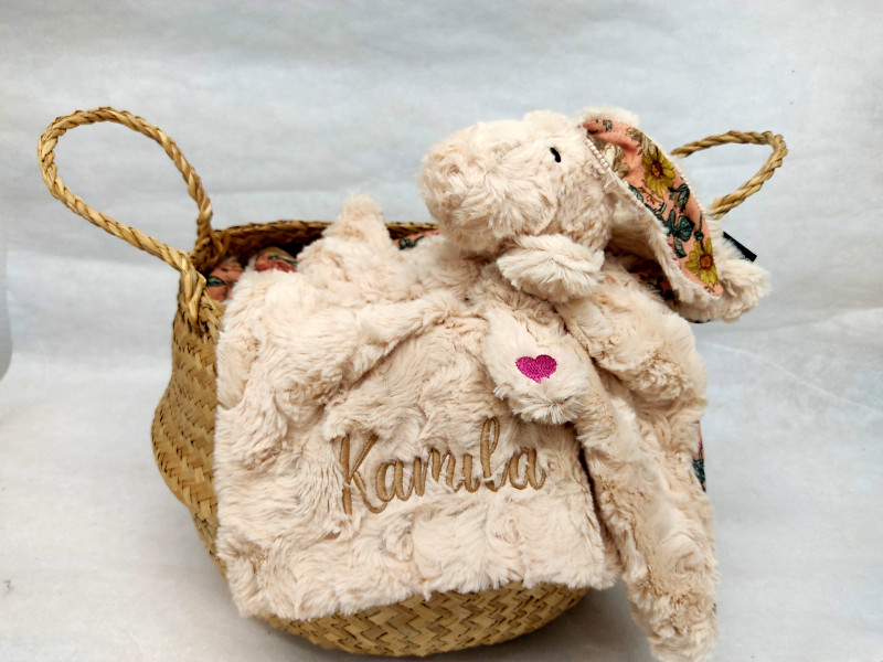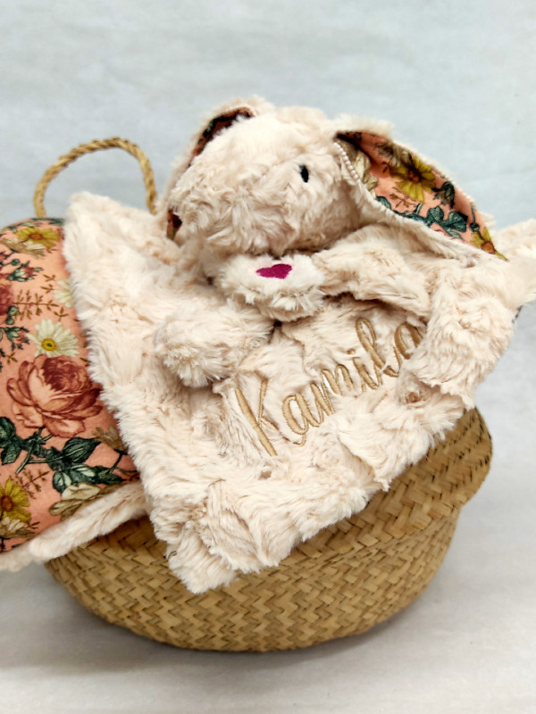 Przytulanka dla niemowląt. Znalezienie idealnego prezentu na chrzest to nie lada wyzwanie. Zaprojektowałam specjalnie dla Ciebie niepowtarzalną i nietypową przytulankę handmade jaką jest królik-kocyk.