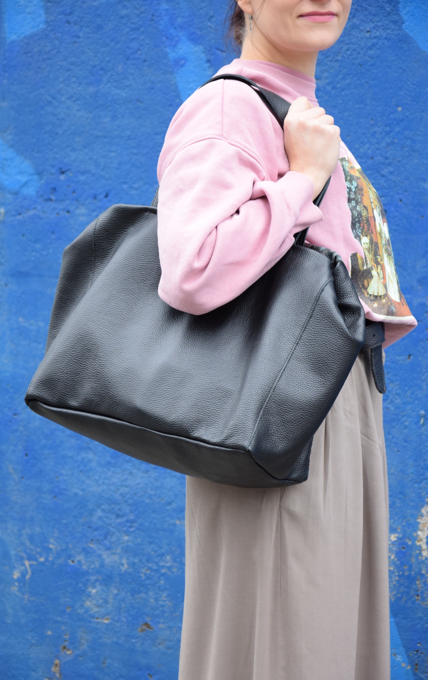 Na co dzień przy wyborze torebki sugerujemy się nie tylko wyglądem i formą lecz przede wszystkim wygodą. Ma być wygodnie, ładnie i praktycznie. Taka jest właśnie torebka worek. Zaprojektowałam ją tak, aby idealnie układała się do ciała, co więcej żeby rączki dobrze leżały w dłoni, a szerokość i długość paska była wygodna.